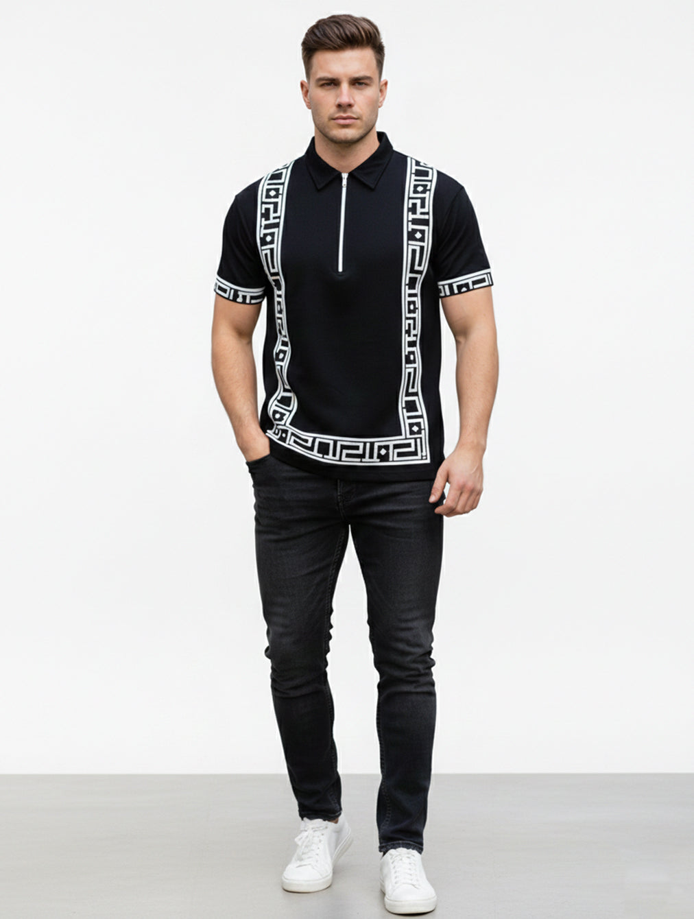Menβs Graphic Quarter-Zip polo