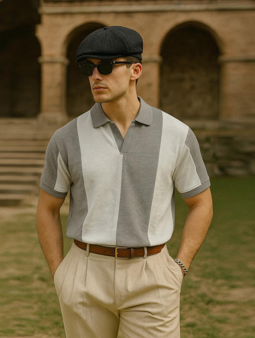 Retro Vertical Stripe Polo