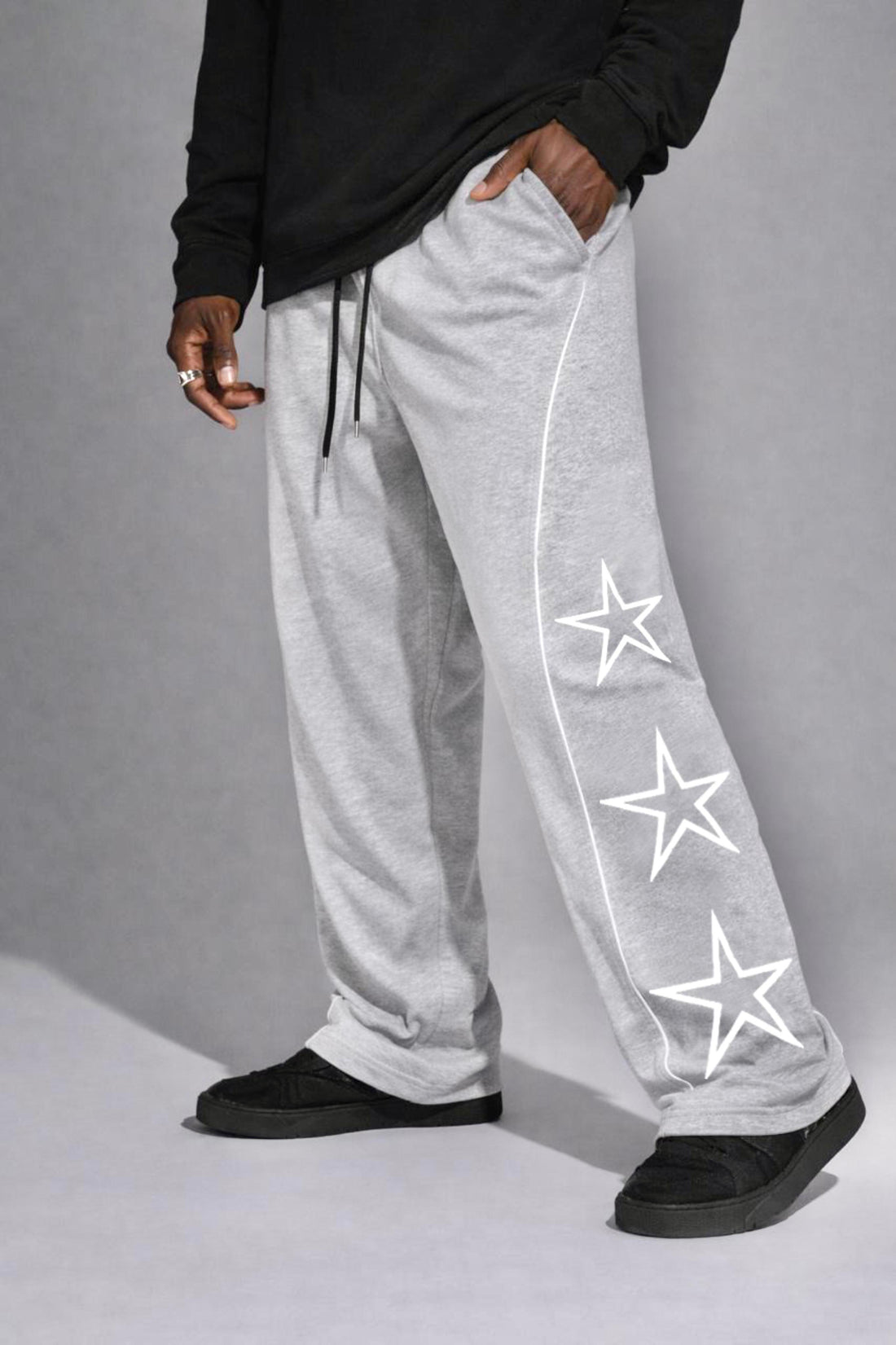 Design: A modern straight-leg silhouette featuring dual contrast white piping along the sides for a...