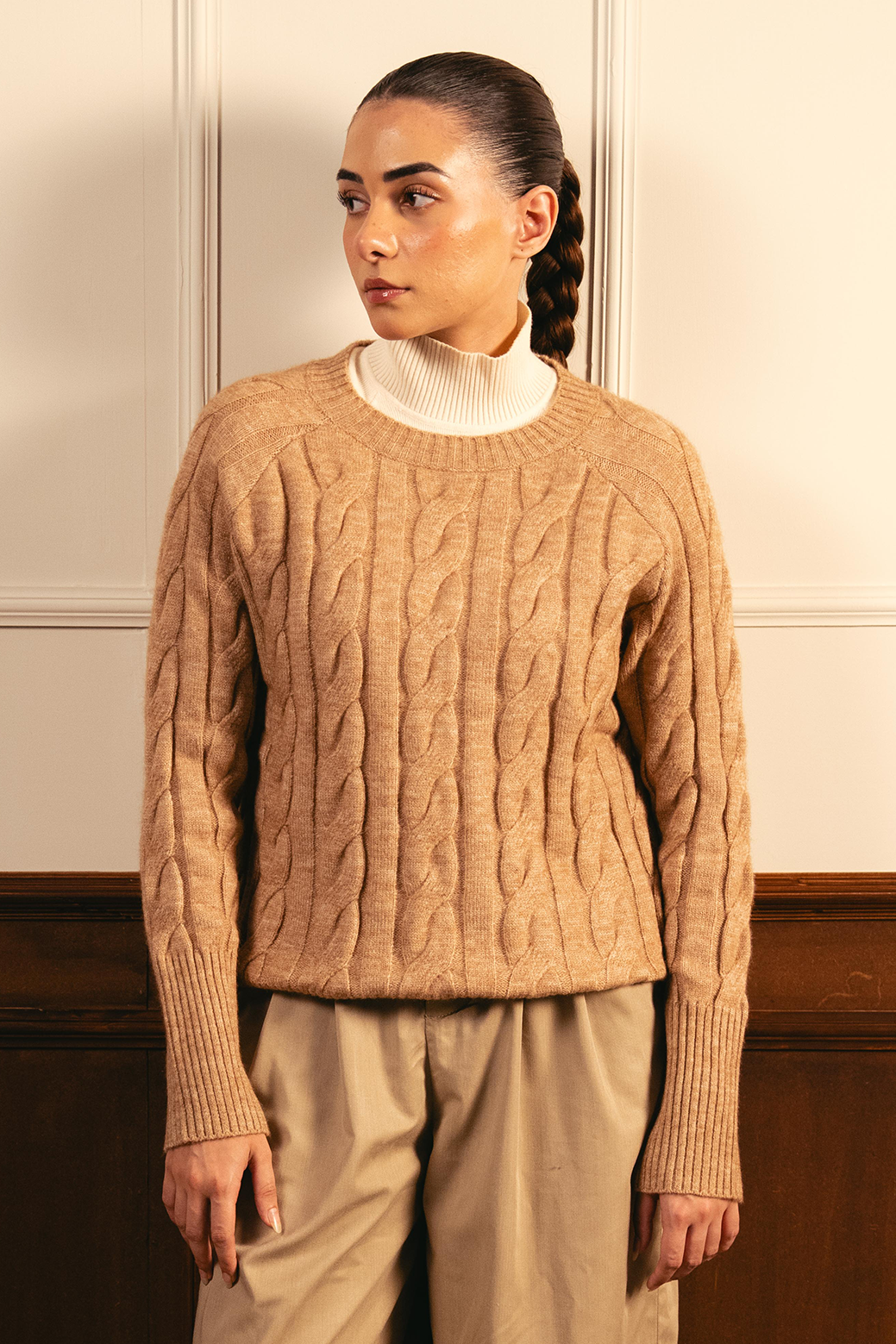 Dusty Cable Knit Sweater - Nude