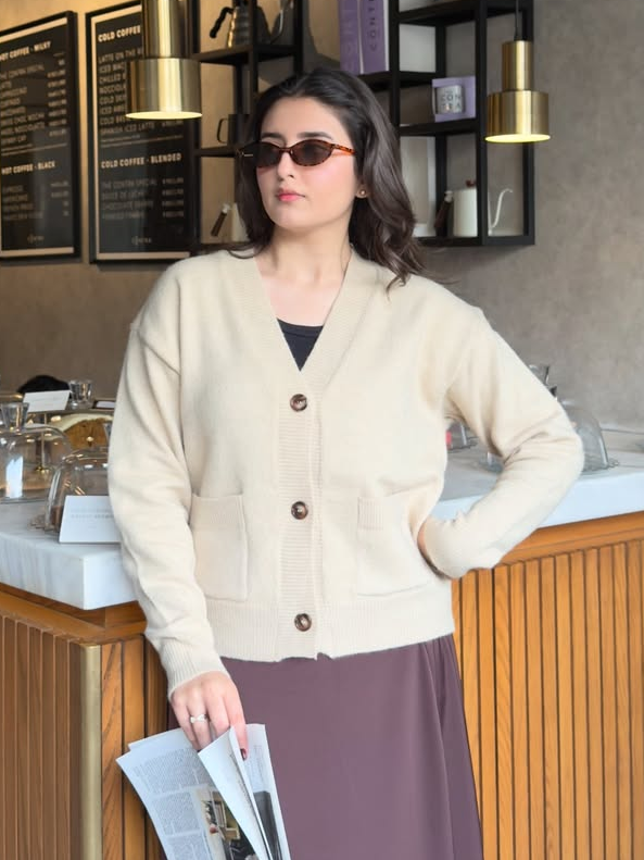 Snug-fit Wool Cardigan - Nude