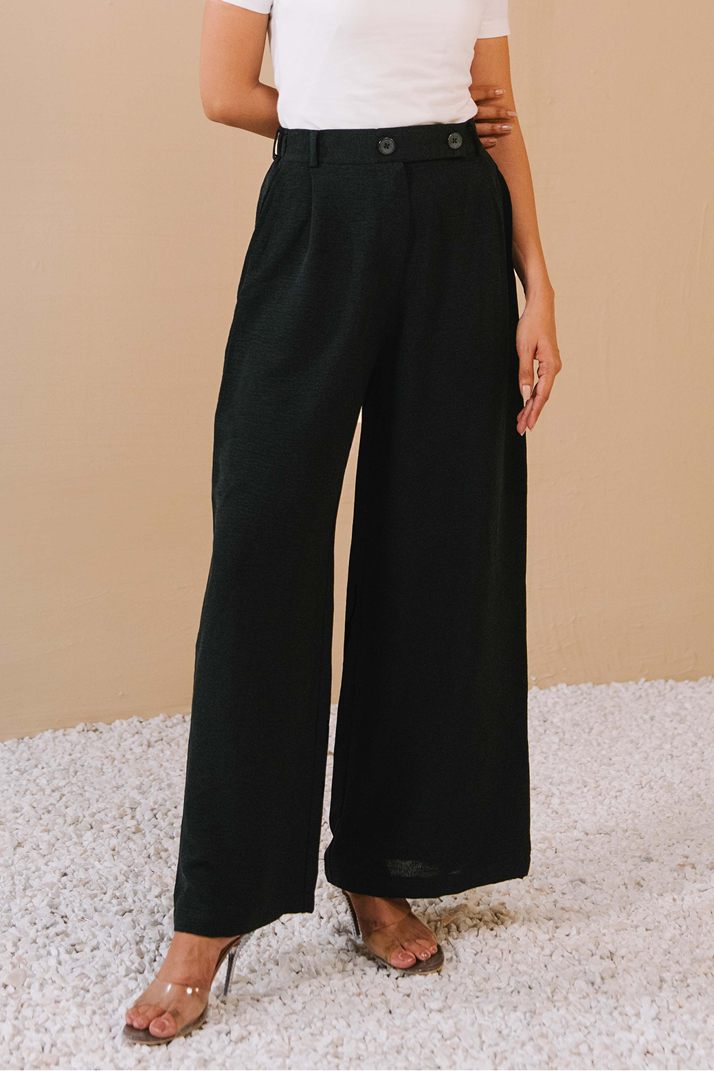 Pleated Wide Leg Pants- Black