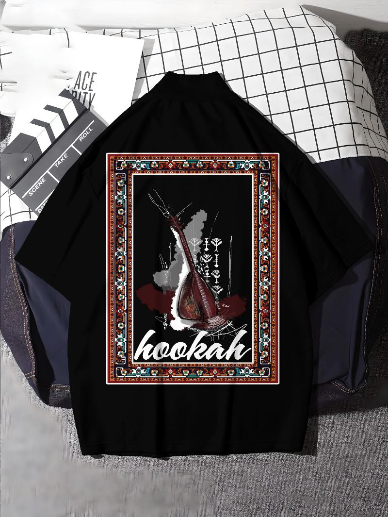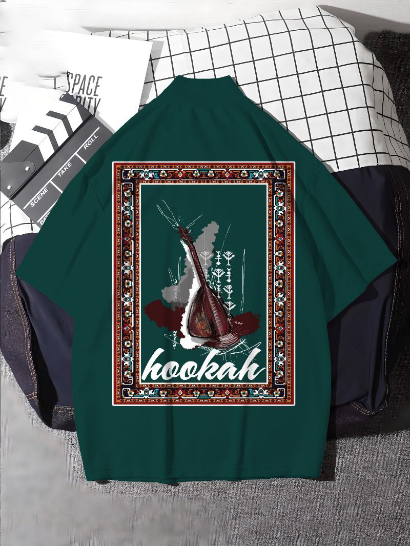 Embrace a global, relaxed aesthetic with the Dreameaura Hookah Graphic T-Shirt. This unique piece features a striking design centered around the cultural art of hookah, framed by an intricate, traditional rug-inspired border on the back. It’s a stylish conversation starter that brings cultural depth to modern streetwear.