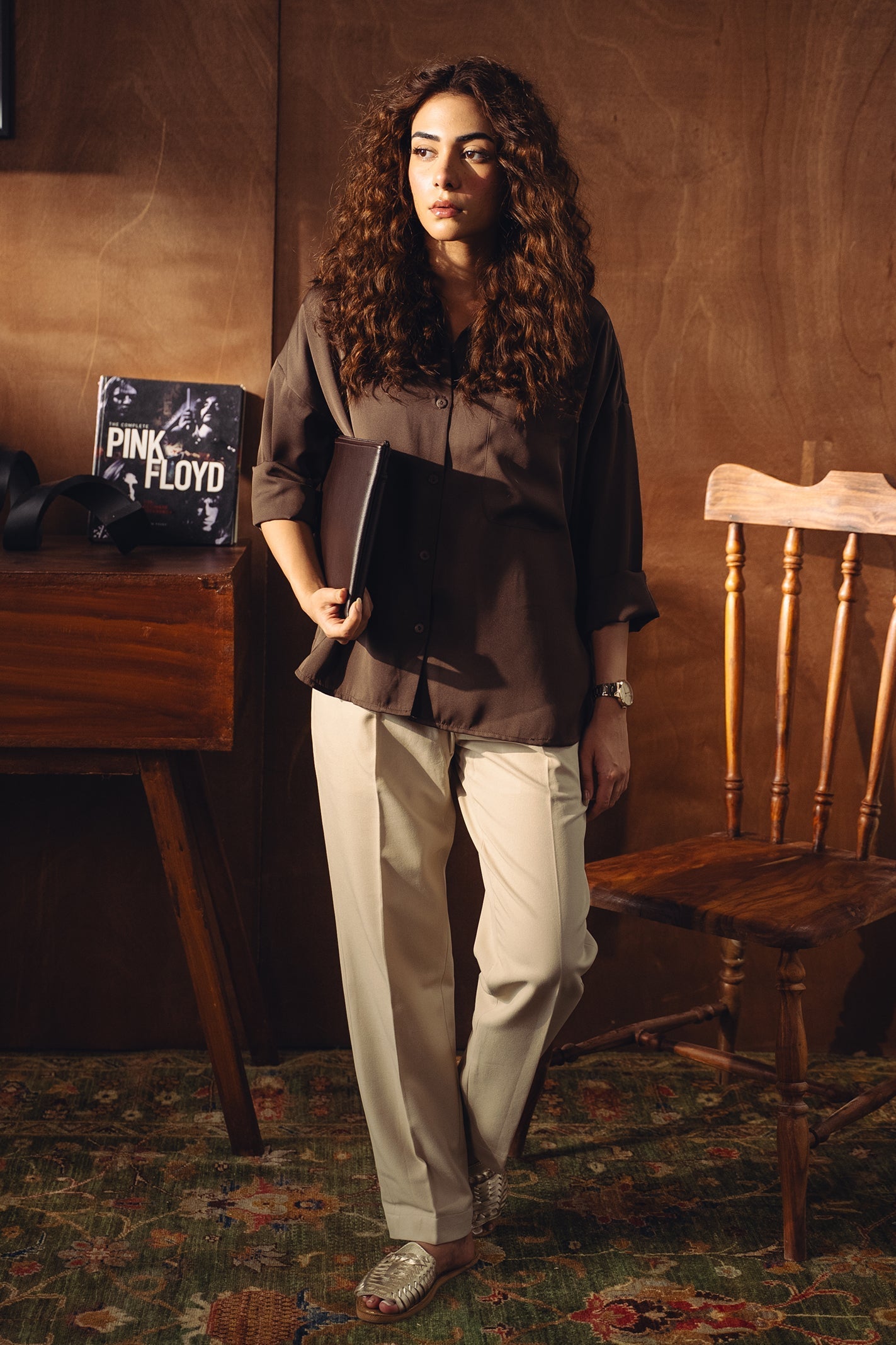 Satin Button-down Shirt - Chocolate Brown